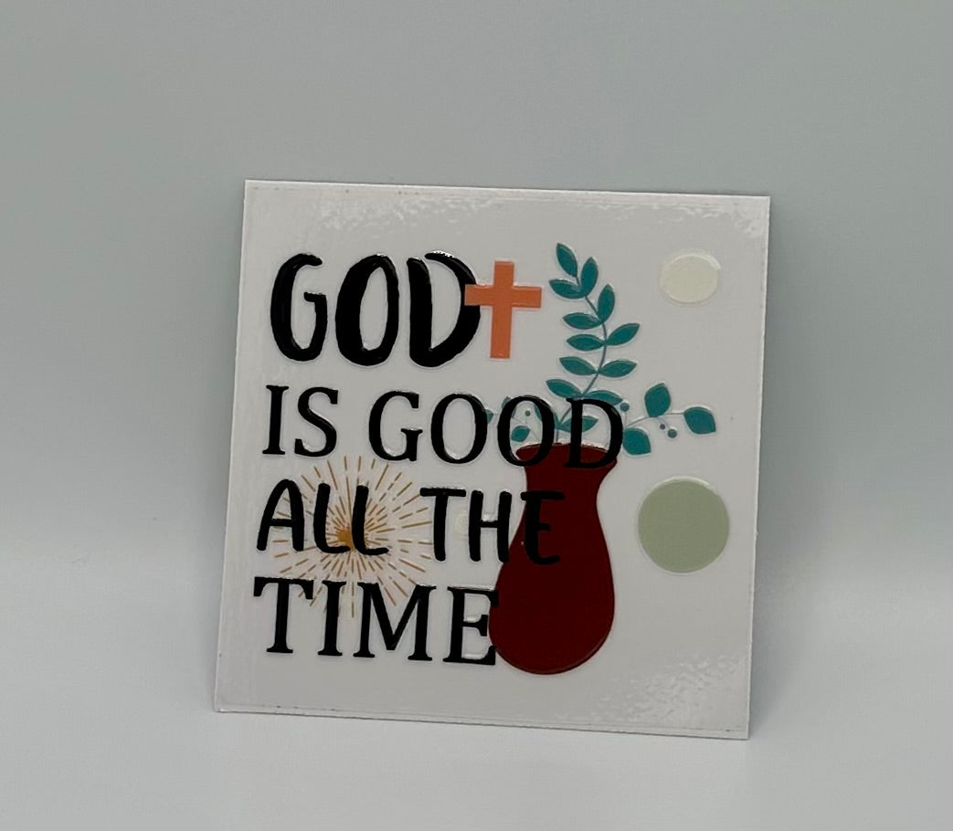 Expertly crafted with UV DTF technology, this tumbler decal displays the powerful message "God Is Good All The Time". Spread positivity and faith with this durable decal.