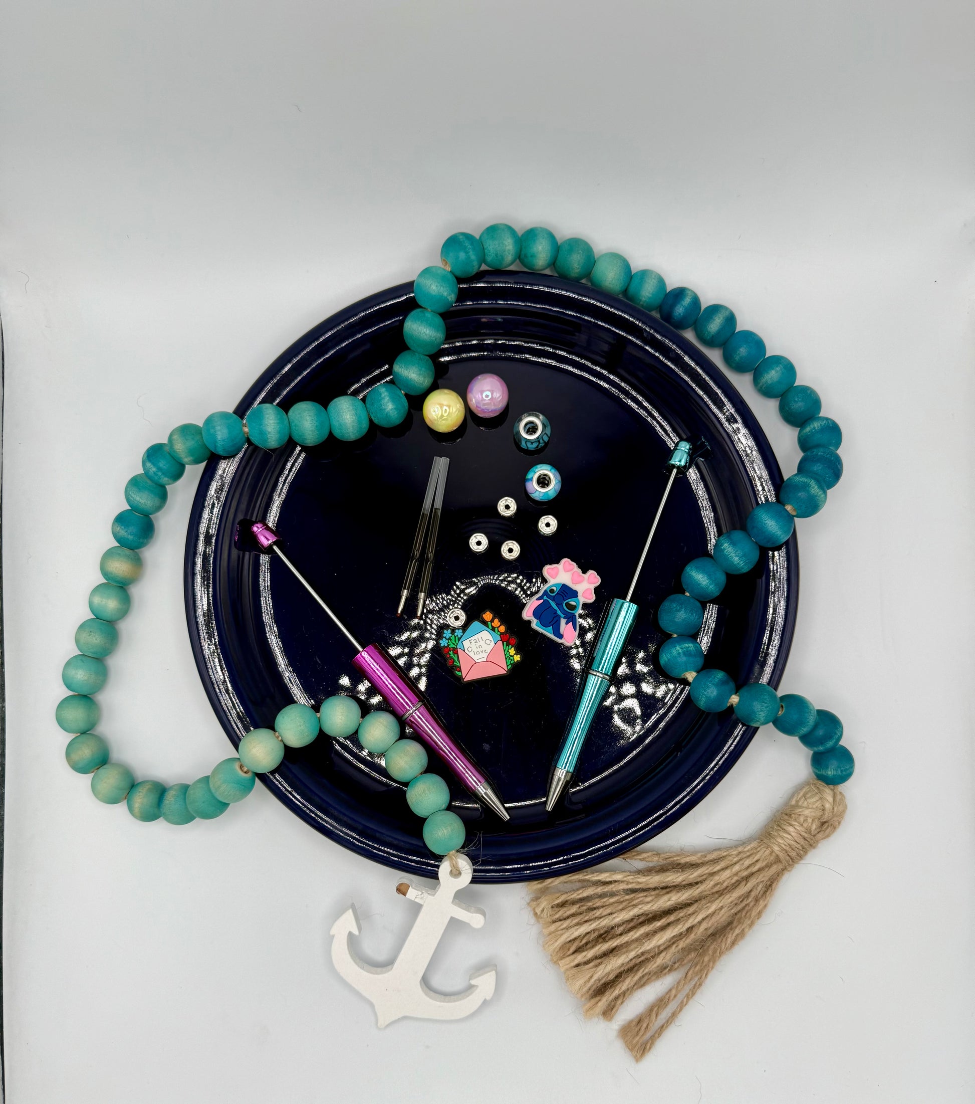 Create heartfelt messages with the Stitch Love Letters bead pen kit, featuring metallic pink and blue pens for elegant writing. This expert kit includes a love letter focal bead, stitch heart eye focal bead, spacers, and bubblegum beads, all inspired by sweet, romantic floral themes. Perfect for crafting personalized notes or gifts, it also comes with ink refills to keep your creativity flowing.