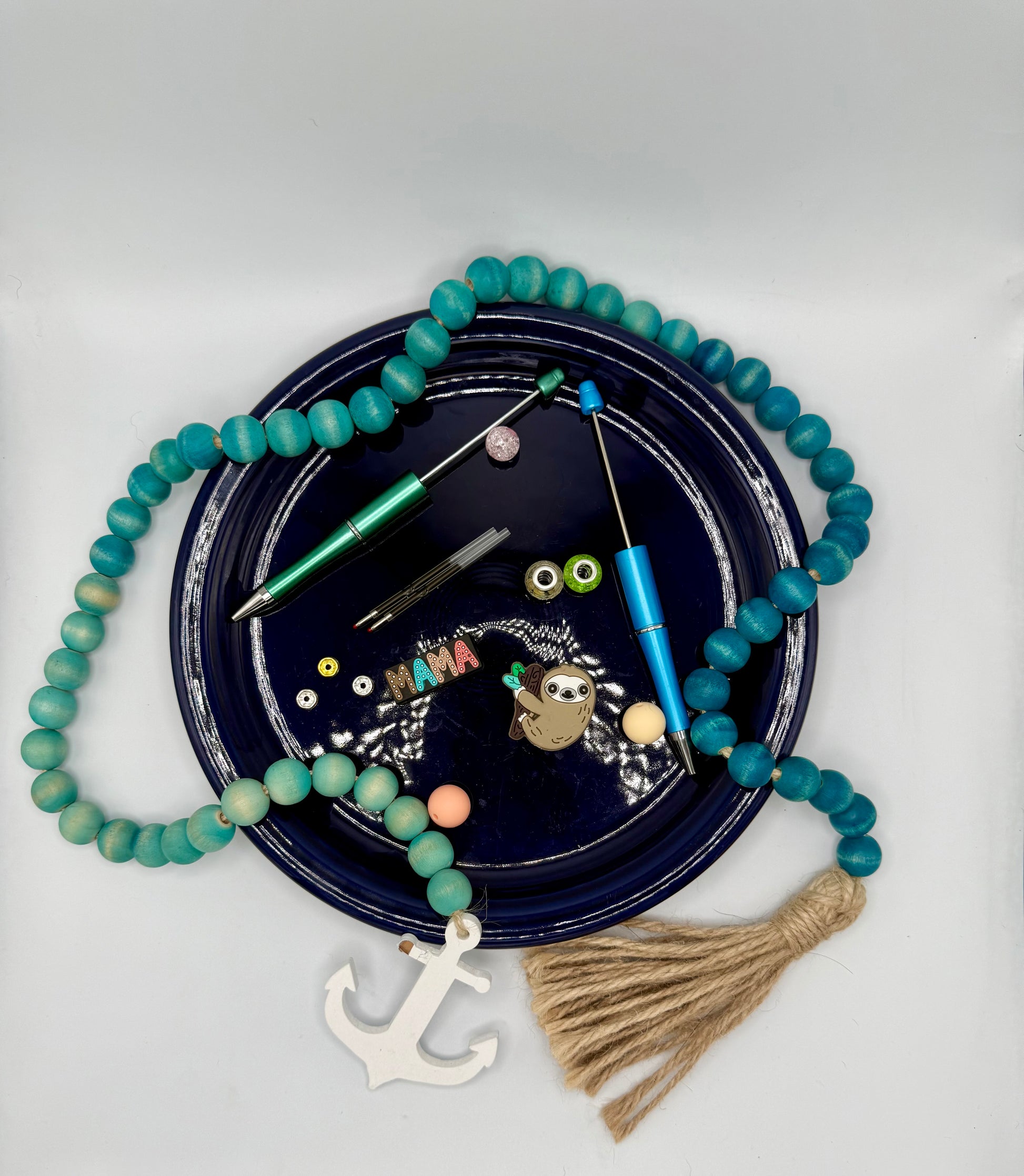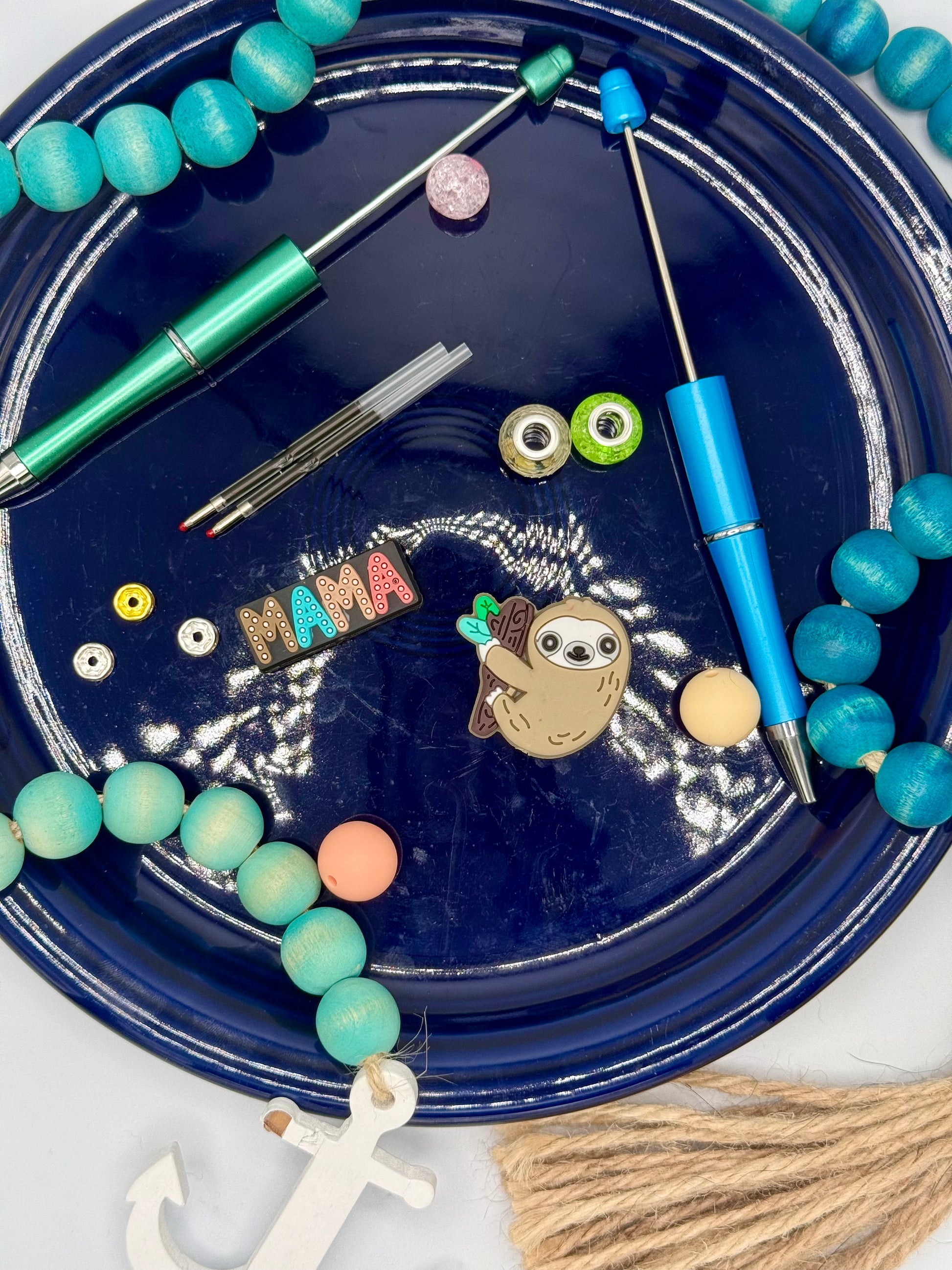 Create personalized writing tools with the Sloth Mama Bead Pen Kit, featuring charming sloth and mama focal beads. This kit includes fun bubblegum beads, spacers, and vibrant green and blue pens, along with ink refills for extended use. Perfect for crafting unique, eye-catching pens that combine creativity with functionality.