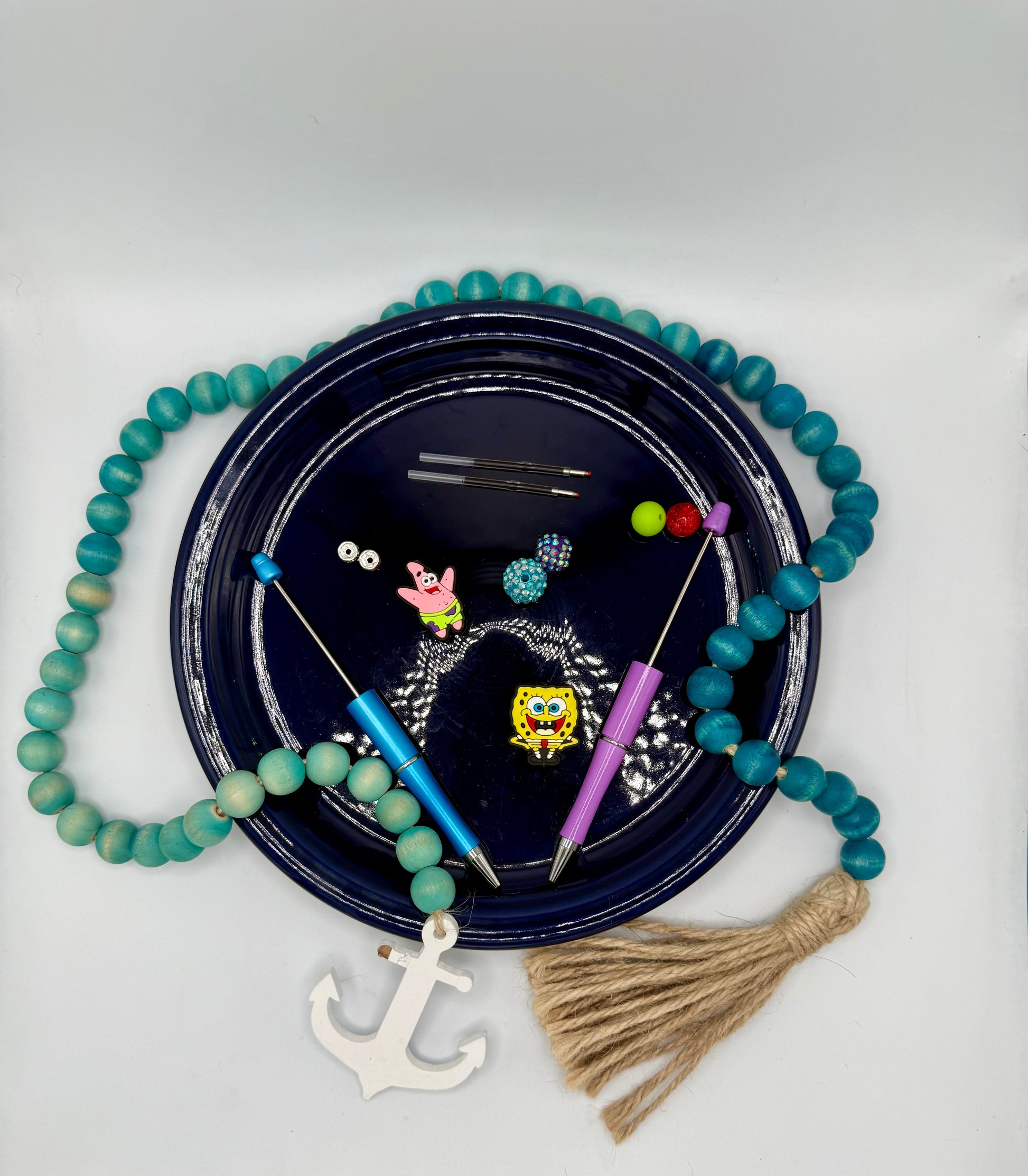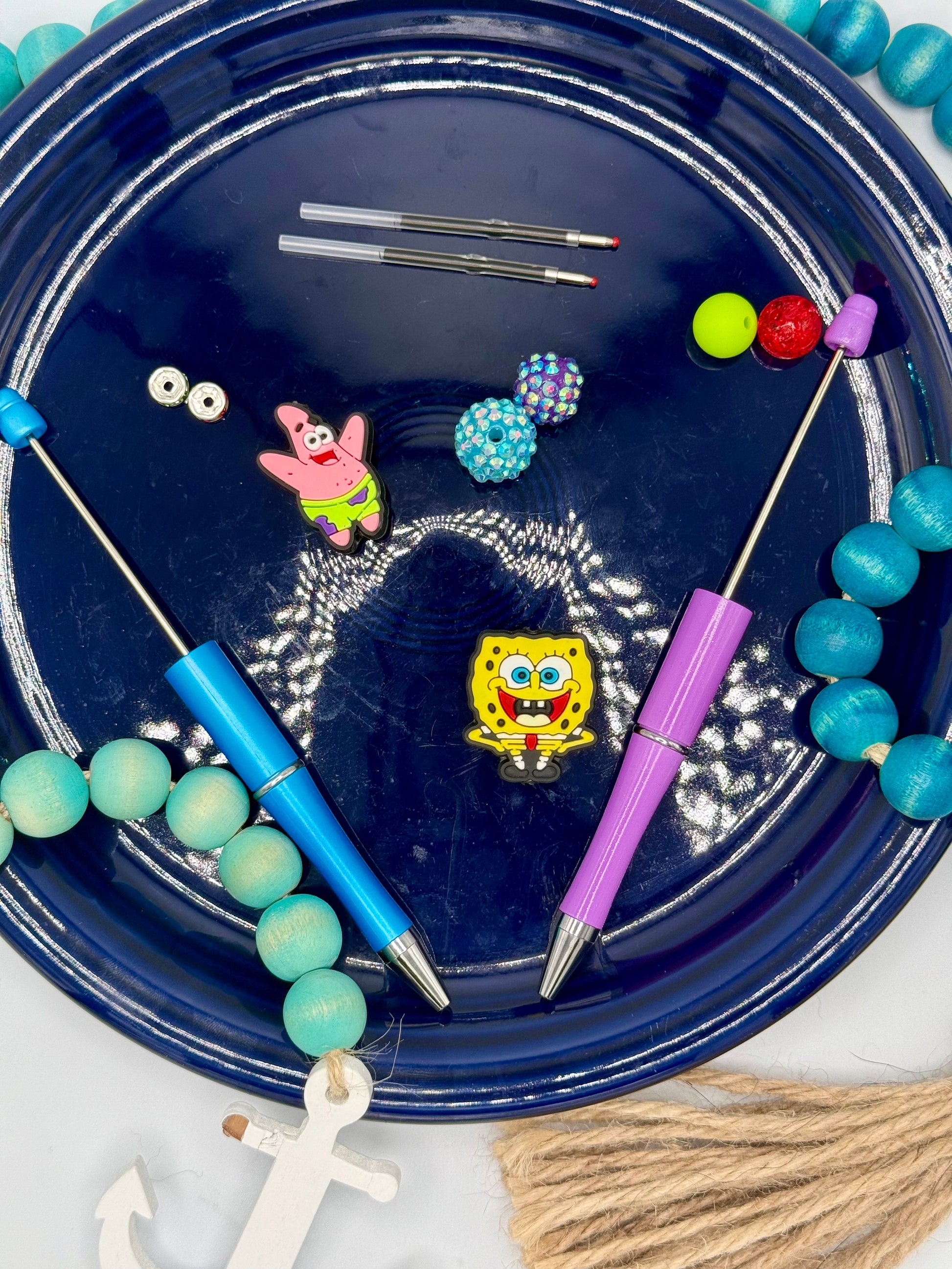 This Sponge & Star bead pen kit offers a creative and enjoyable crafting experience. It includes a light purple pen and a light blue pen, each adorned with a star focal bead and a sponge focal bead. Complemented by spacers and bubblegum beads, this kit allows you to design unique, eye-catching pens that combine playful textures and colors with functional writing tools. Ideal for both beginners and experienced crafters seeking to personalize their stationery with expert flair.