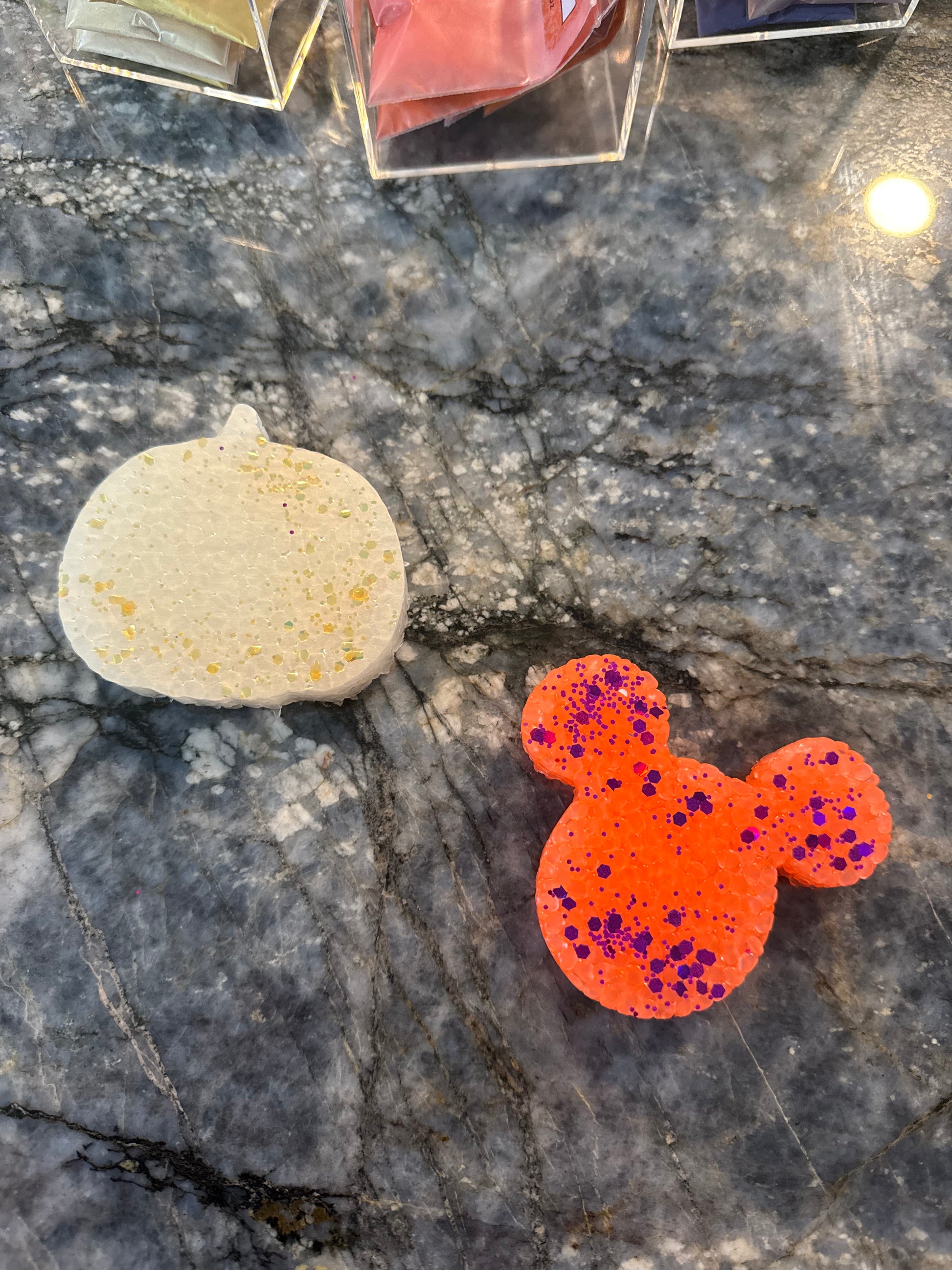 The Mouse freshie is a charming air freshener designed for your car or home. Crafted with vibrant mica powders and sparkling glitter, it can be customized to your preferred scent and color. This unique blend offers a subtle yet lasting fragrance while adding a decorative touch to your space. Ideal for those who appreciate personalized, high-quality freshening solutions.